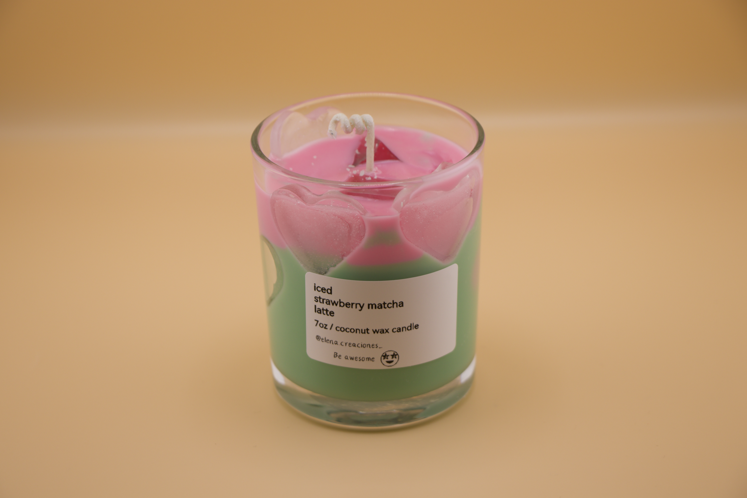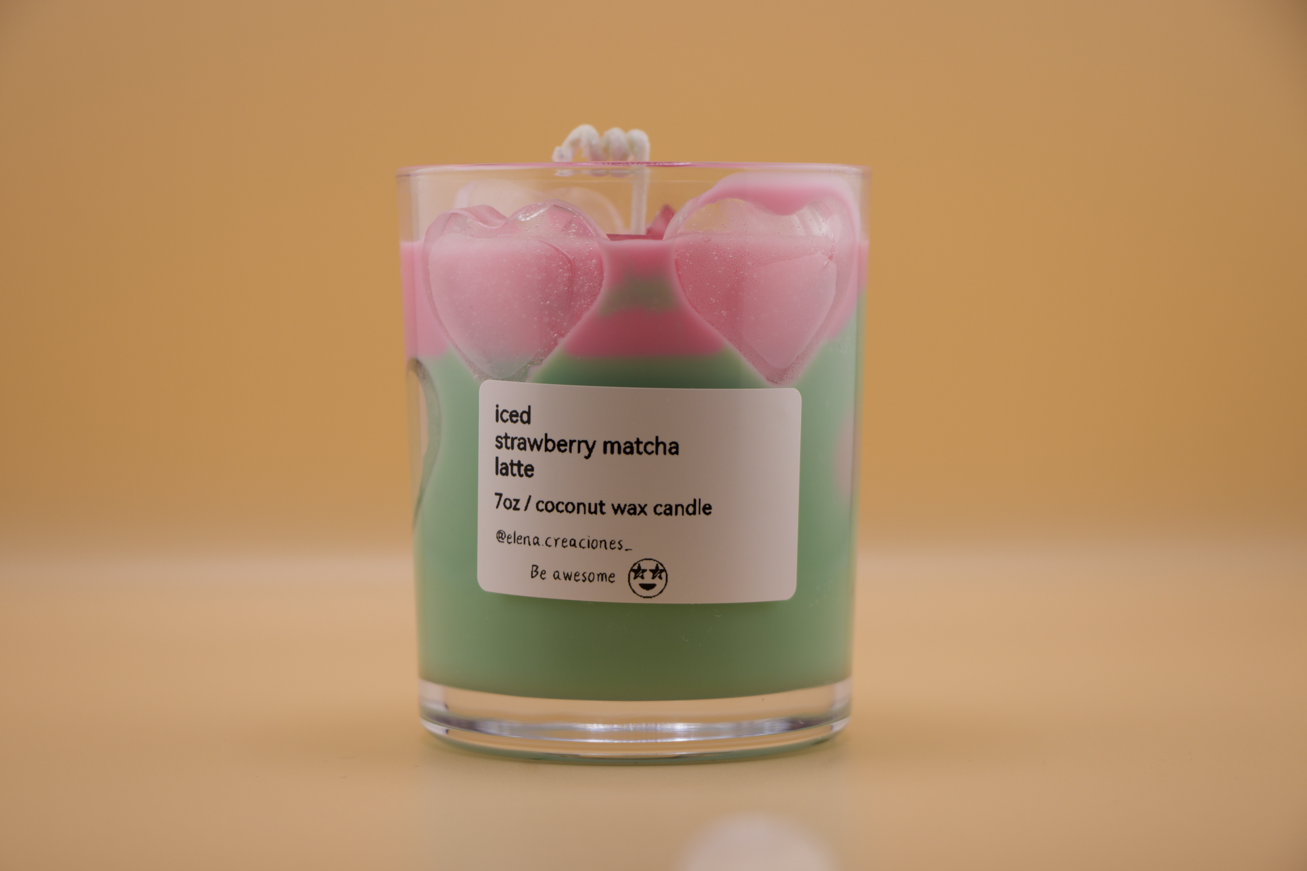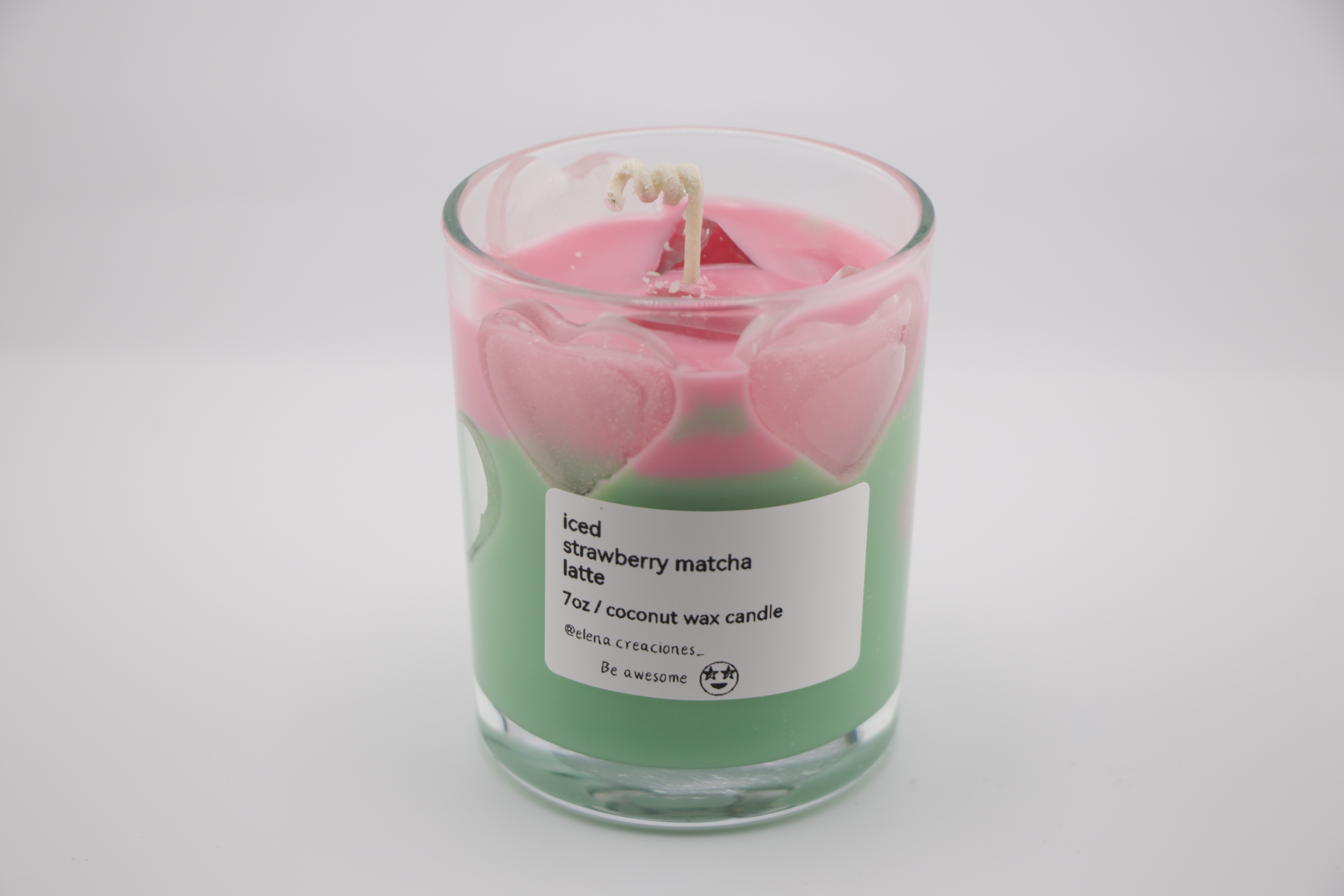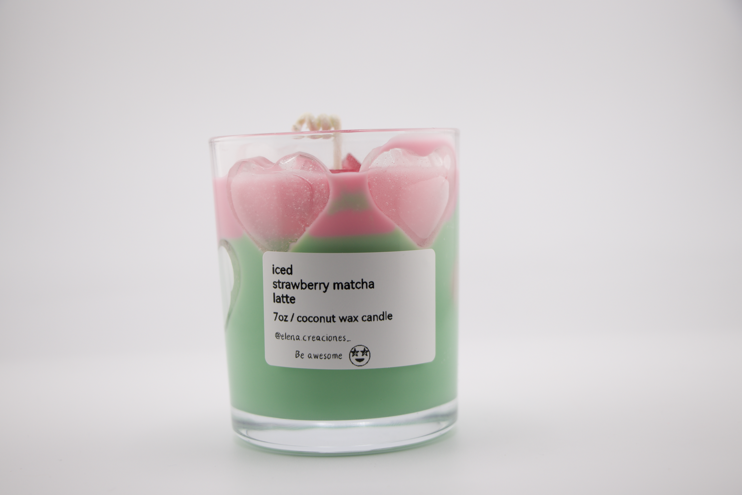 Handcrafted candle made with coconut wax, with a fresh and sweet blend of strawberry and matcha. A balanced aroma that brings calm, freshness, and a cheerful touch to the atmosphere.